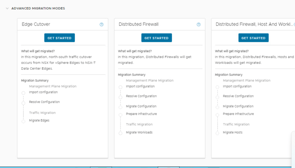 3: Login back to NSX-T GUI if logged out, if the earlier session is still active then refresh the page to see that the migration service is enable and we can see 2 type of migration modes Standard and Advance Migration Modes.