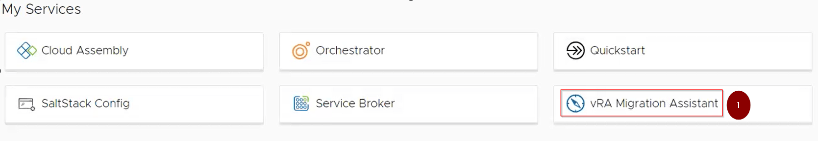 2.On my service page we click on the vRA Migration Assistant.