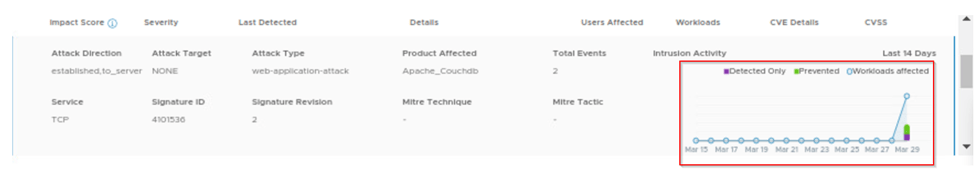 We can scroll down on same page and expand the impact score and view the full event history of the attack been detected. On below capture we can see that attack has been detected only. Reason as we have created detect only rule.