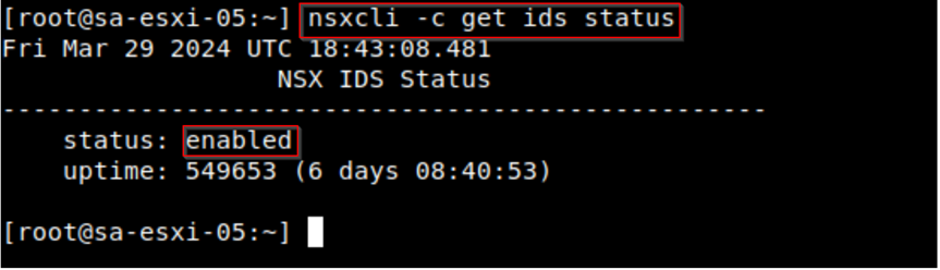 Login to the ESXi for which the IDS/IPS is enabled and provide the command “nsxcli -c get ids status.”
